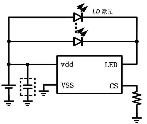 HX306C DC2.5-5V输入,驱动2V 500MA LD 原理图